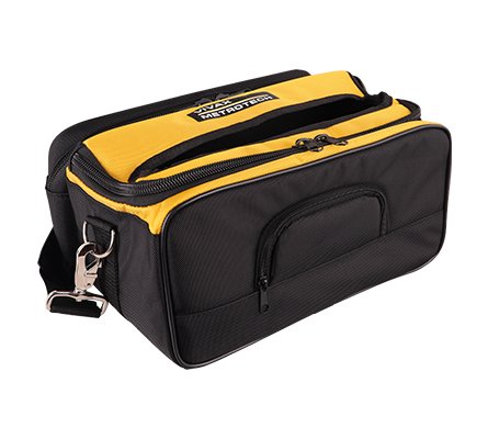 The Loc3-Tx carry bag has compartments for the ground stake, connection leads and more. The transmitter can be fully operated without removing removing it from the bag. The bag comes with an adjustable shoulder strap.