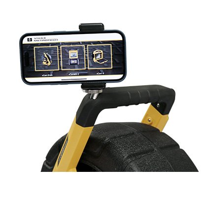 The vCamDrain tablet mount is installed on the open end of the reel where the pushrod is deployed. The Tablet Mount Adapter adds the ability to mount common off-the-shelf tablet holders, phone holders, swivels, or tripods.