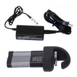 The rechargeable battery kit for the vScan transmitter is supplied with a charger assembly and custom Lithium-ion battery. Lithium-ion batteries are high capacity, do not develop a memory and can hold a charge for an extended amount of time.