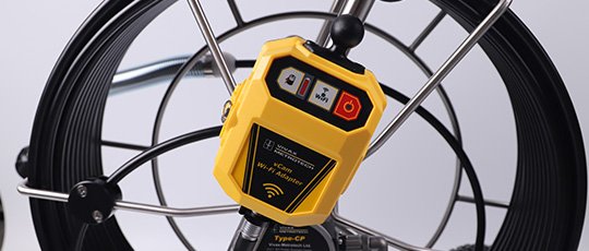 The vCamDrain features a Wi-Fi reel controlled by the vCam Mobile Controller (VMC) app. When connected to the reel by Wi-Fi, the VMC app controls the camera lights, distance counter reset, sonde and text writer. The app shows the reel's Wi-Fi, battery, and charging status. Recording can be done directly to the app...